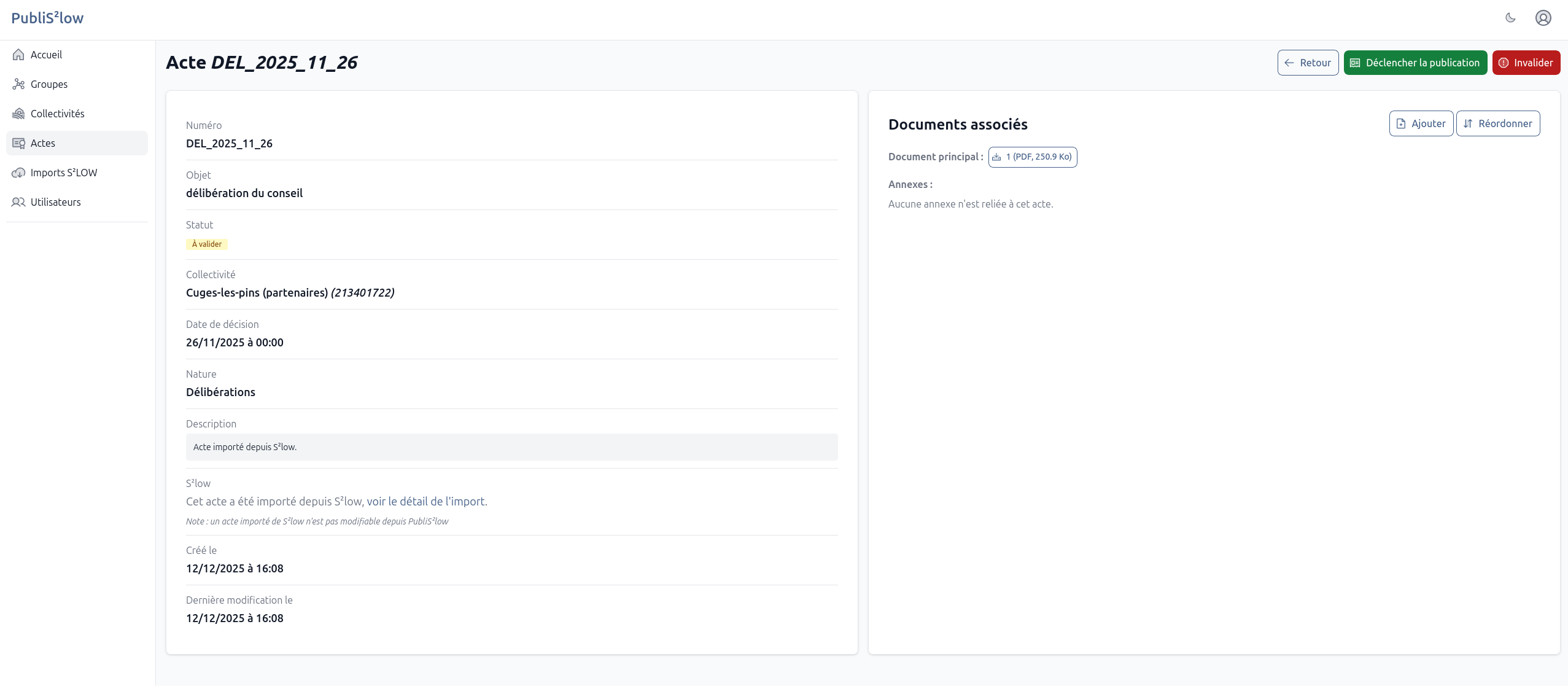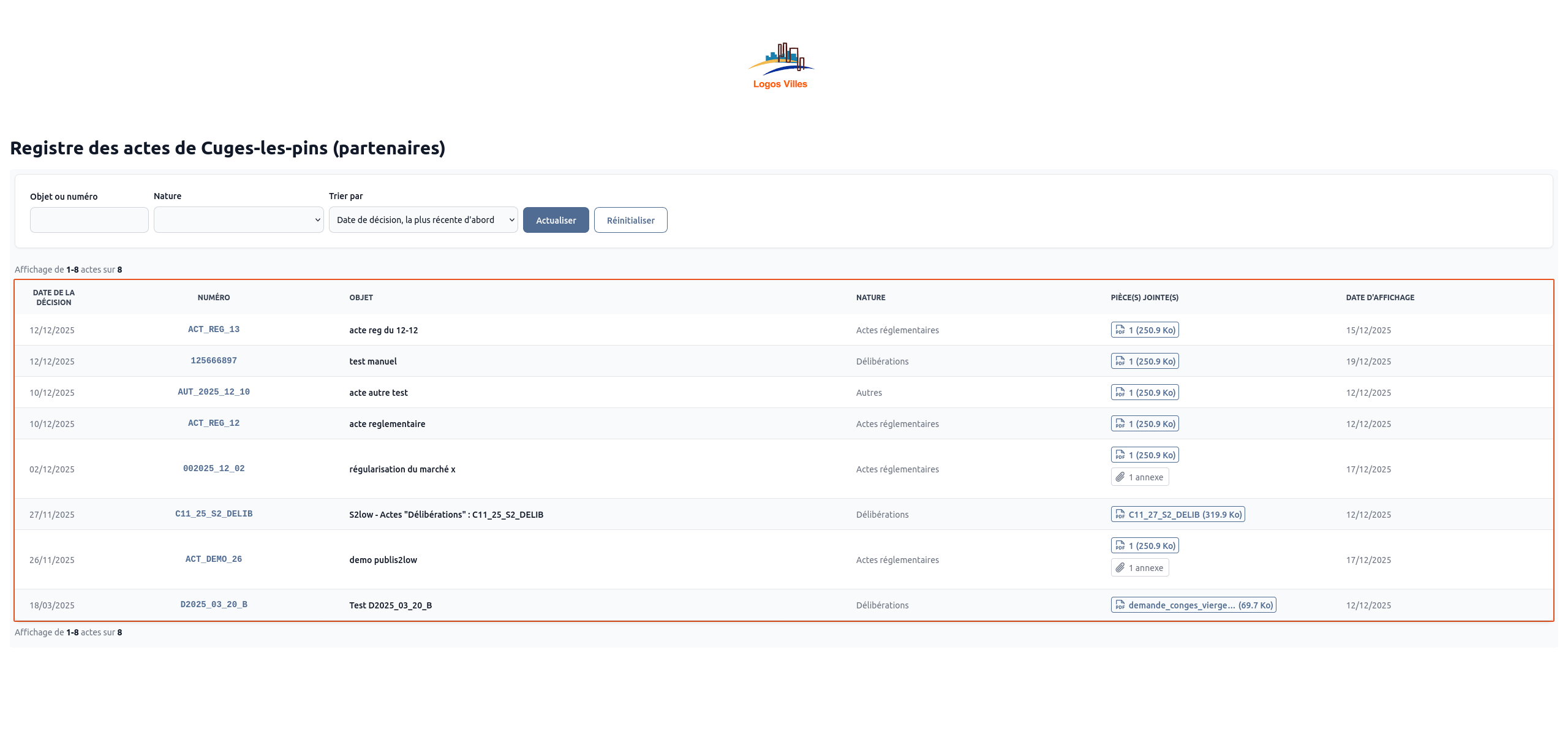 | Page publique | Acte DEL_2025_11_26 PubliS²low |